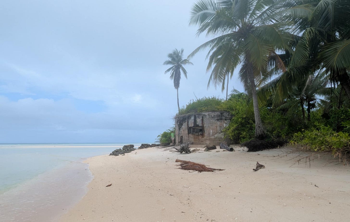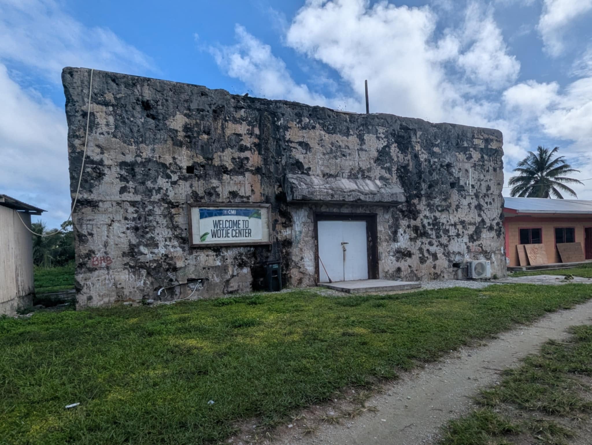 Japanese buildings are still standing - this is a lookout. The Wotje campus of the College of the Marshall Islands is housed in a renovated Japanese bunker.
